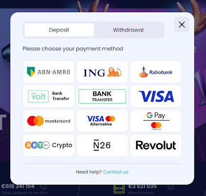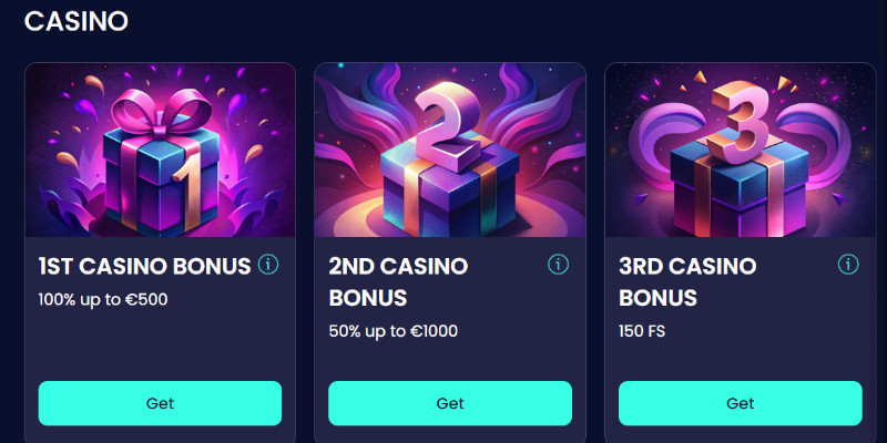 Nieuwe gokkers kunnen profiteren van een welkomstbonus van tot €1500 en 150 gratis spins. Deze bonus wordt verdeeld over meerdere stortingen en geeft nieuwe gokkers een mooie start.